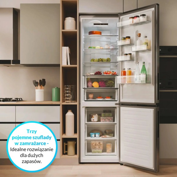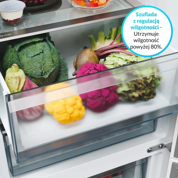 Камера свіжості Candy Fresh 0°C Area, гнучке розташування полиць на дверцятах Candy, шухляда з регулюванням вологості Candy Adaptive Humidity Area