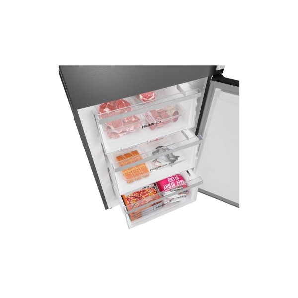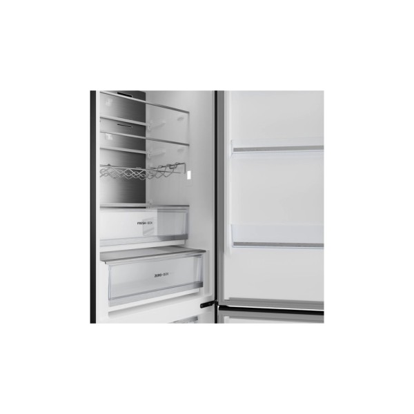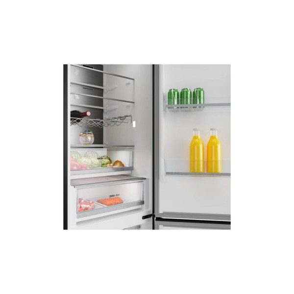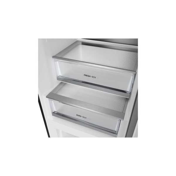 2 шухляди для зберігання свіжості, 3 скляні полиці, 1 полиця для пляшок, 3 полиці на дверцятах, лоток для яєць