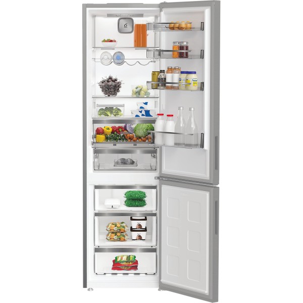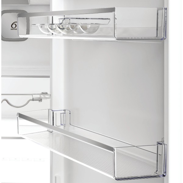 4 полиці на дверцятах, тримач для пляшок, лоток для яєць, 1 шухляда для фруктів та овочів, 1 шухляда для м'яса та молочних продуктів