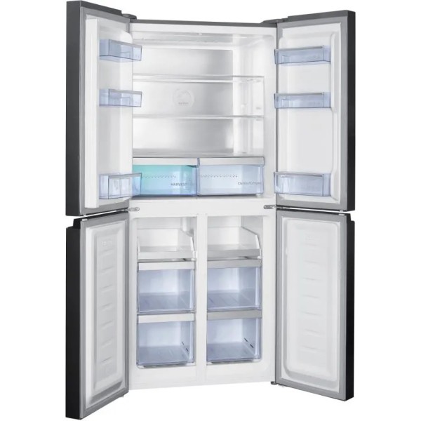 вентилятор, ролики, шухляда з незалежним контролем температури, світлодіодне освітлення, сенсорна панель керування, низькотемпературна камера, покриття проти відбитків пальців, ніжки з регулюванням висоти