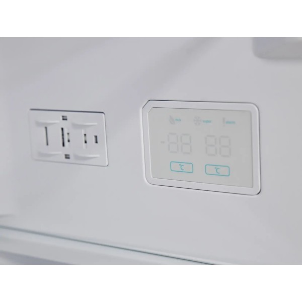 полиці з "захисного скла", сигналізація прочинених дверей (індикатор), сигналізація підвищення температури (індикатор)