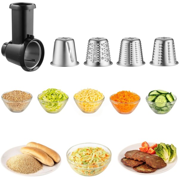 барабан для нарізання, барабан для дрібного подрібнення, барабан для грубого подрібнення, барабан для дрібного натирання, барабан для натирання картоплі, штовхач
