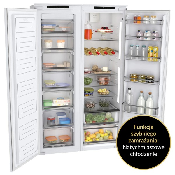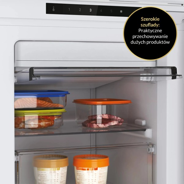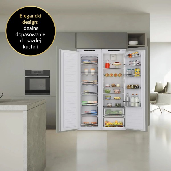 2 закриті полиці, без інею (No Frost), сенсорна панель керування, електронний контроль температури, модульний виріб - дозволяє підключення 2 або більше холодильних пристроїв із серії, електронне керування