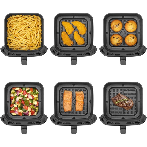 нековзні ніжки, автоматичне вимкнення, смаження, підсмажування, випікання, запікання та гриль, оглядове віконце, нагадування про струшування, сигнал готовності, сигнал закінчення роботи, таймер, світлодіодний дисплей, цифровий годинник