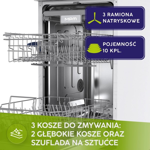 Посудомийна машина MPM 45-ZMF-01 44,8 см Автоматичне відкриття дверцят Ящик для столових приборів