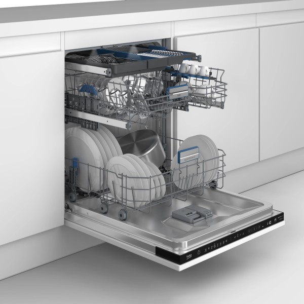Захист від протікання Beko WaterSafe+, активне сушіння Beko SteamGloss, інверторний двигун Beko ProSmartInverter, захист скла Beko GlassShield, система миття піддонів Beko TrayWash, система розпилення Beko AquaFlex, скорочення циклів Beko Fast+, сушіння Beko SelfDry, розпилювач Beko PowerIntense, індикатор етапу миття Beko CycleTrack, третій кошик Beko FlexSpace, автоматизація миття Beko SensorAdapt, система регулювання верхнього кошика BekoAcrobat