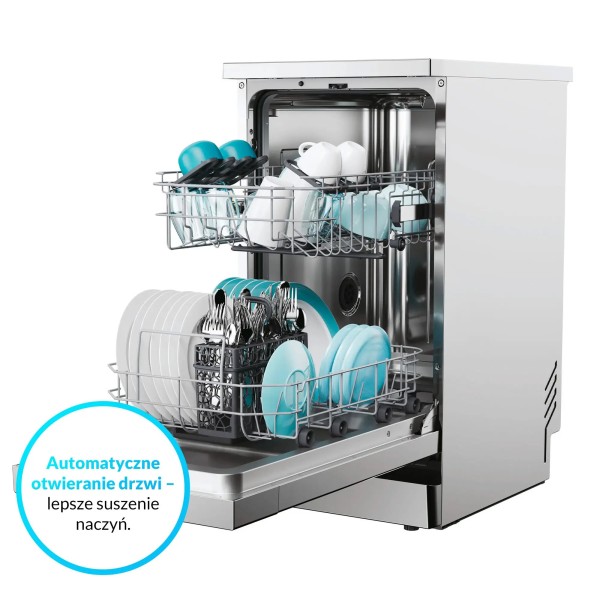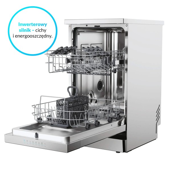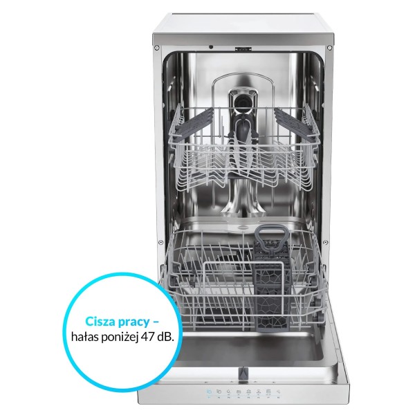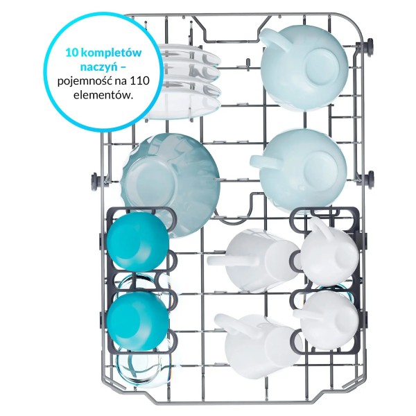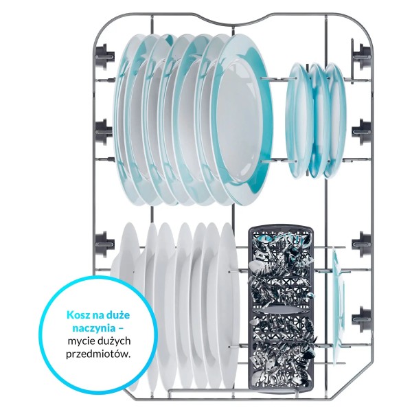 інструкція користувача польською мовою, кошик для столових приборів, полиця для чашок, наливний шланг, зливний шланг
