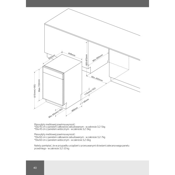 AMICA DIM46B6LAID 44,8 см. Автоматичне відкриття дверей ящика