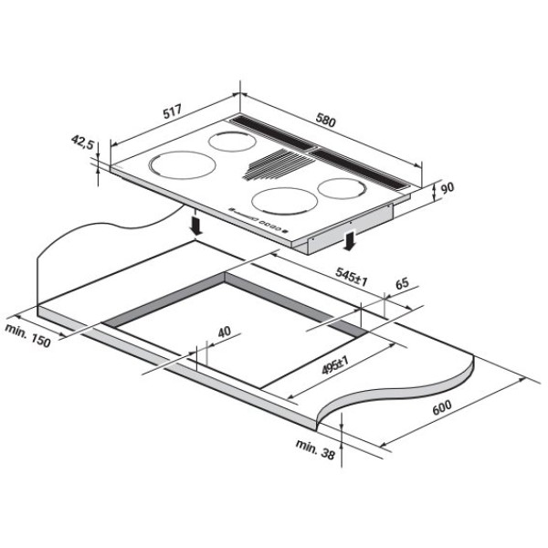 4 газові конфорки, вільна зона нагріву для розігріву їжі