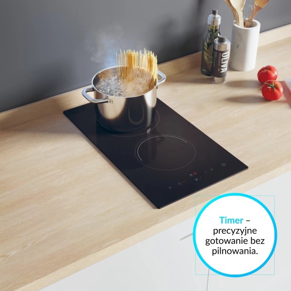 2 зони підсилення, 9 рівнів потужності нагріву, функція паузи, таймер, таймер