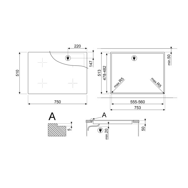 Індукційна варильна поверхня Smeg Universal SI5743D1 75 см