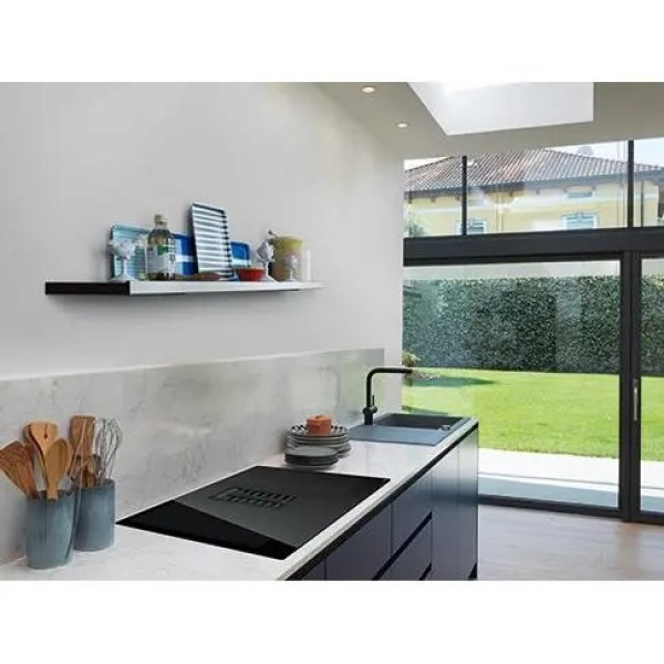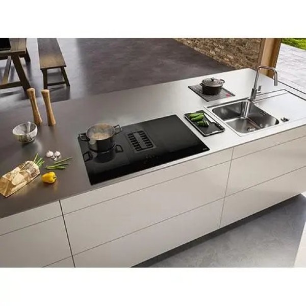 9 рівнів потужності нагріву, функція Flexi - об'єднання двох полів в одне велике, вбудована в плиту витяжка, збереження тепла, розморожування продуктів, швидкий нагрів, таймер