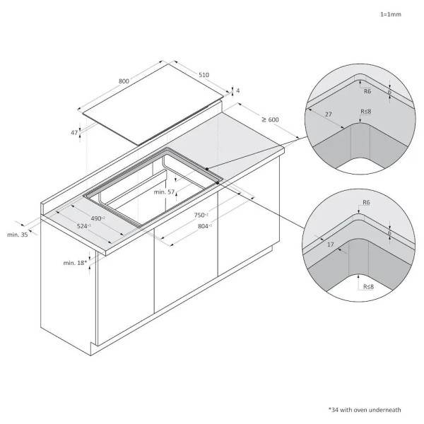 2 розширюваних індукційних поля, 4 індукційних поля