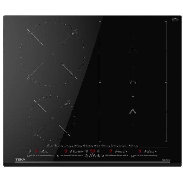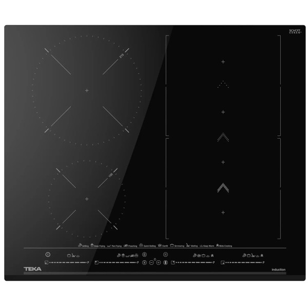 8 прямих функцій, 9 рівнів потужності нагріву, автоматичне приготування, тушкування, підтримка тепла, функція "Power", функція "Stop+GO", функція Booster, функція Flexi - об'єднання двох полів в одне велике, функція приготування на низькій потужності, низька функція приготування за температурою, функція паузи, функція powerManagement, функція Power Plus, функція Quick Boiling, кипіння, конфі, плавне регулювання потужності нагріву, підтримання тепла, розпізнавання наявності каструлі, розпізнавання розміру каструлі, розчинення, плавлення, SlideCooking, установка Slim Fast-Click система, таймер, дисплей заданої потужності нагріву