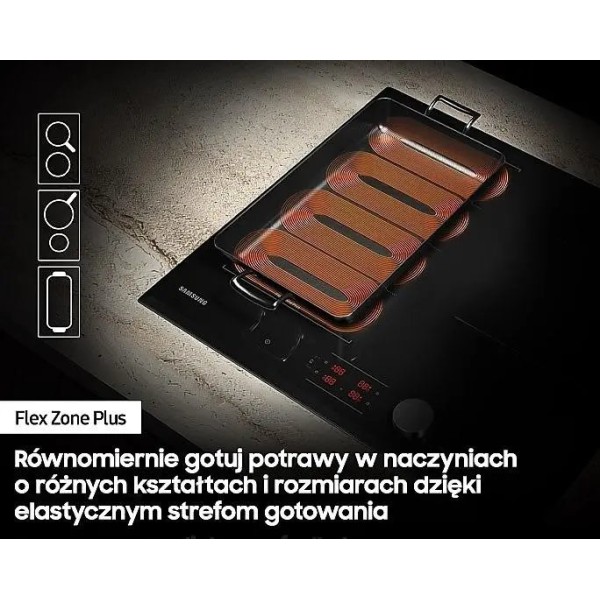 15 рівнів потужності нагріву, функція Booster, зв'язок з витяжкою, Wi-Fi модуль, збереження тепла, розпізнавання наявності каструлі, розпізнавання розміру каструлі, Flex Zone, таймер