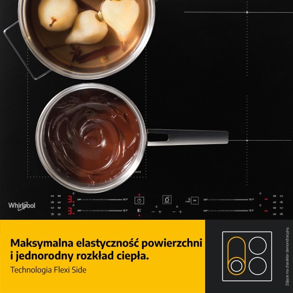 18 рівнів потужності нагріву, FLEXI SIDE, функція підтримки тепла, функція приготування на низькій потужності, функція powerManagement, кипіння, Booster fields, технологія «Шосте почуття», таймер