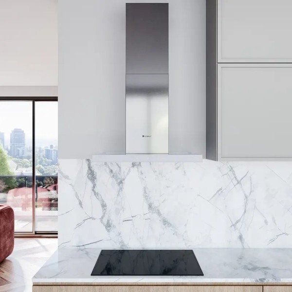 автоматична співпраця з індукційною варильною поверхнею, можливість встановлення зовнішнього двигуна, світлодіодне освітлення, підсвічування кнопок керування, регулювання інтенсивності освітлення, регулювання висоти витяжки, таймер, зміна кольору освітлення