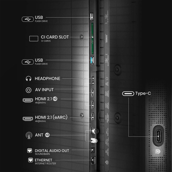 Масштабування до 4K зі штучним інтелектом, датчик світла зі штучним інтелектом, AMD FreeSync Premium, антибліковий фільтр PRO, цифровий гребінчастий 3D-фільтр, датчик світла, режим FILMMAKER, повноматричне локальне затемнення, Hi-View AI Engine PRO, MEMC (оцінка та компенсація руху), QLED Color, квантові точки, масштабування до 4K UHD