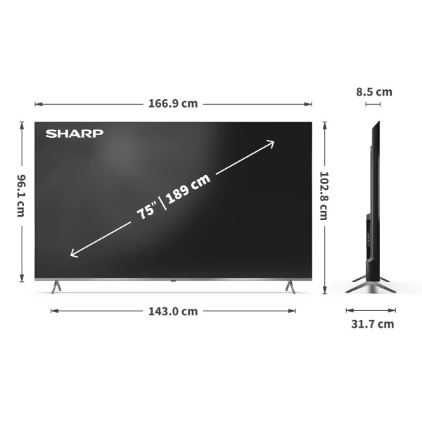 Телевізор Sharp 75JP7765E 75" QLED Mini LED 4K Google TV Dolby Vision Dolby Atmos HDMI 2.1 DVB-T2