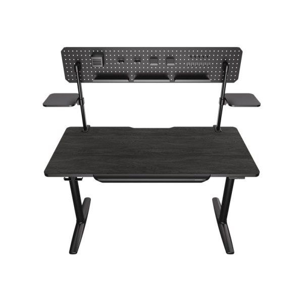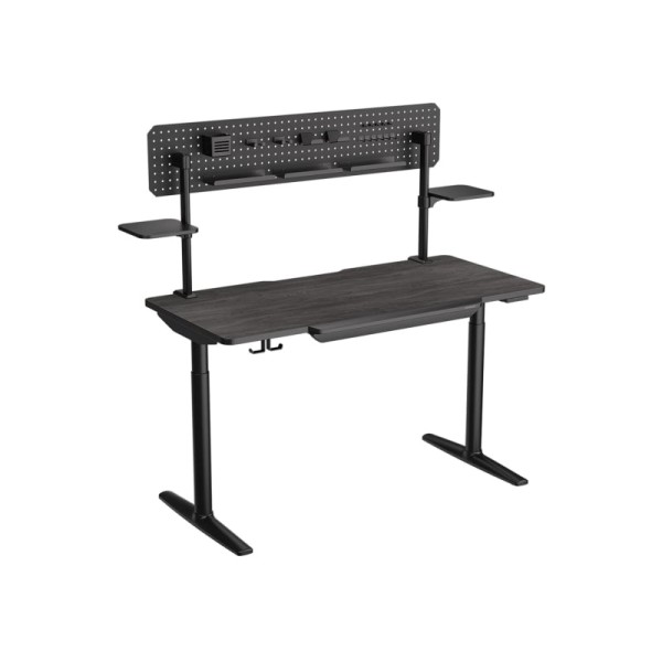 Шухляда Система організації кабелів Вбудована панель керування Двоколонна конструкція на ніжках Тримач для навушників Тримач для кабелів Стільниця з покриттям під дерево