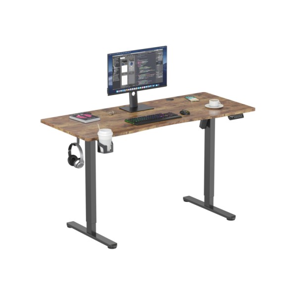 Два отвори для введення кабелю Регульовані ніжки Вбудована панель керування Стільниця, розділена на дві частини Тримач для напоїв Тримач для навушників Система запобігання зіткненням