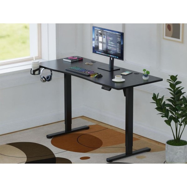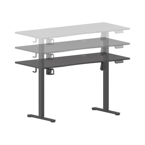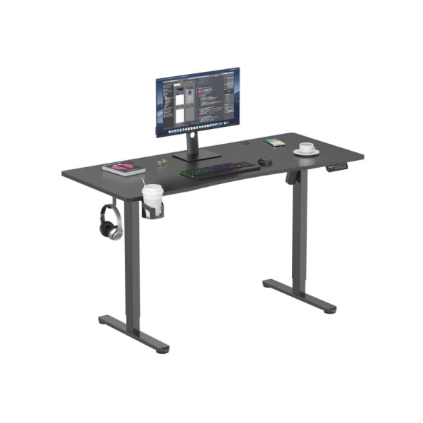 Два отвори для введення кабелю Регульовані ніжки Вбудована панель керування Стільниця, розділена на дві частини Тримач для напоїв Тримач для навушників Система запобігання зіткненням