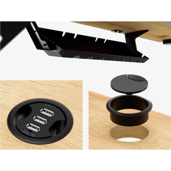 USB-хаб Тримач для напоїв Тримач для рюкзака/сумки Тримач для навушників Лоток для кабелів Один кабельний вхід Вбудований USB-зарядний пристрій